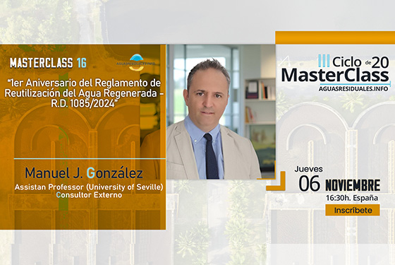 El próximo jueves 06 de noviembre a las 16:30 h de España, en la MasterClass 16 hablaremos sobre el "1er Aniversario del Reglamento de Reutilización del Agua Regenerada - R.D. 1085/2024" con Manuel Jesús Gonzalez - Assistan Professor University of Seville y Consultor Externo y donde contaremos con el patrocinio de la empresa ATLANTIUM que nos mostrará sus equipos y soluciones para desinfección, puedes inscribirte aquí...