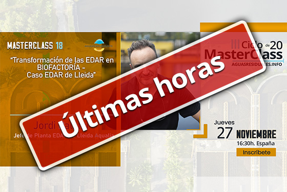 Hoy a las 16:30 h de España llevaremos a cabo la MasterClass 18 "Transformación de las EDAR en BIOFACTORÍA - Caso EDAR de Lleida" donde contaremos con Jordi Palatsi - Jefe de Servicio EDAR de Lleida en Aqualia y con Ángel Freixó - CTO de CREATECH 360, que nos presentará las soluciones de automatización y control inteligente que ofrecen y casos de éxito como el de Lleida, todavía puedes inscribirte aquí...