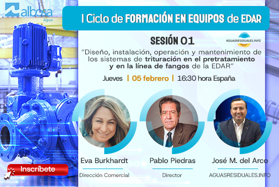 El próximo jueves 05 de febrero a las 16:30 horas de España, comienza nuestro “I Ciclo de Formación online de Equipos de EDAR” organizado por AGUASRESIDUALES.INFO donde más de 1.000 profesionales de España, Portugal y todos los rincones de América Latina ya se han inscrito.