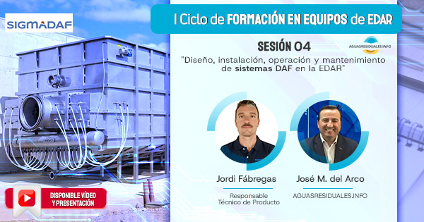 Ya tienes disponible el VÍDEO y la PONENCIA de la Sesión 04 "Diseño, instalación, operación y mantenimiento de sistemas DAF en la EDAR"