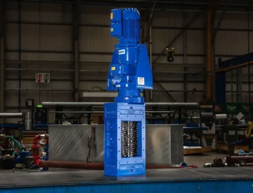 Para garantizar la continuidad operativa y proteger las costosas bombas, el diseño del proyecto contempló la integración de sistemas de pretratamiento de sólidos robustos y altamente eficientes: los trituradores de doble eje.