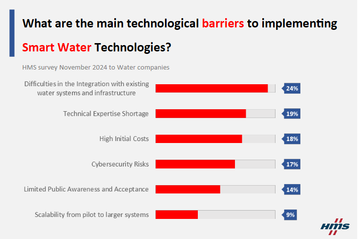 Las iniciativas para la digitalización en la gestión en los tratamientos de agua prometen revolucionar la forma en que las empresas de servicios públicos gestionan sus infraestructuras; sin embargo, muchos proyectos se quedan estancados o no avanzan a la velocidad esperada. Una encuesta realizada por HMS Networks en noviembre de 2024 entre empresas de agua y aguas residuales reveló que las dificultades de integración con los sistemas e infraestructuras existentes representan una barrera critica para el éxito de estos proyectos.