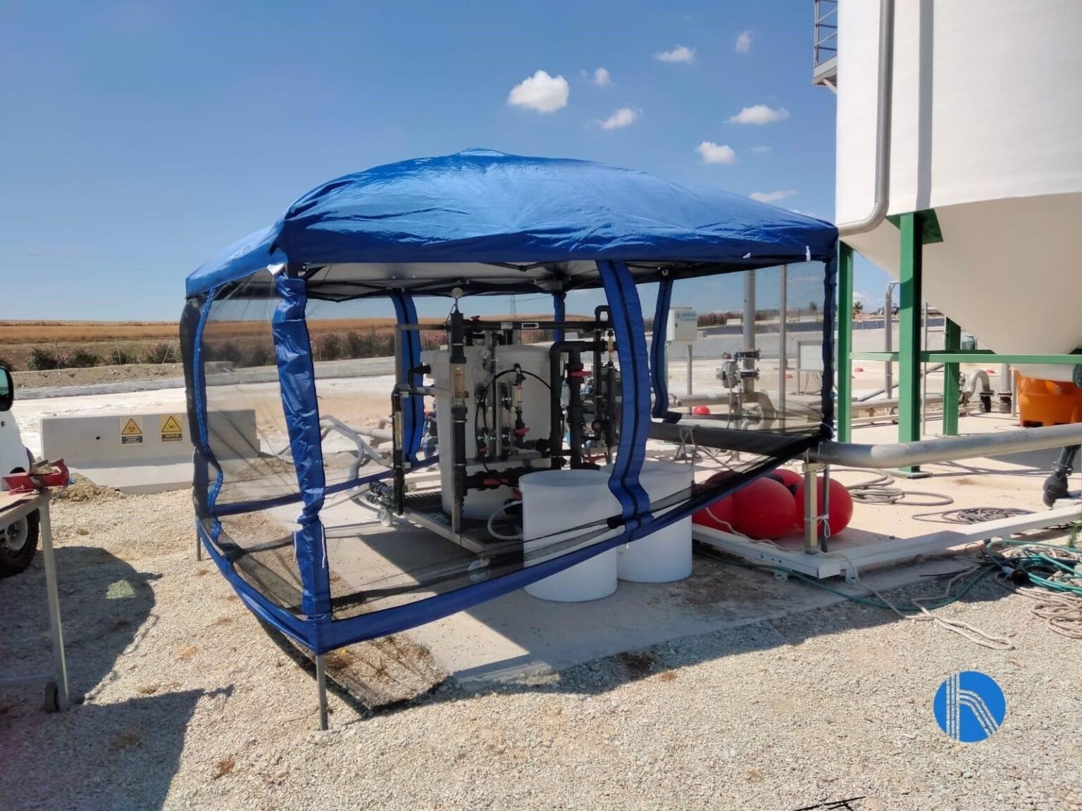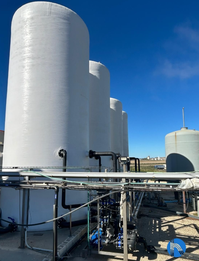 Vista depósitos acumulación agua permeada y sistema de recirculación