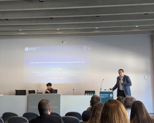 Seguidamente, Adriano Camps, profesor e investigador de la Universidad Politécnica de Cataluña, ha ofrecido la ponencia "De los satélites a la estimación de las necesidades de riego", centrada en el potencial de los datos satelitales para ajustar las aportaciones de agua a las necesidades reales de los cultivos y avanzar hacia una agricultura más eficiente.
