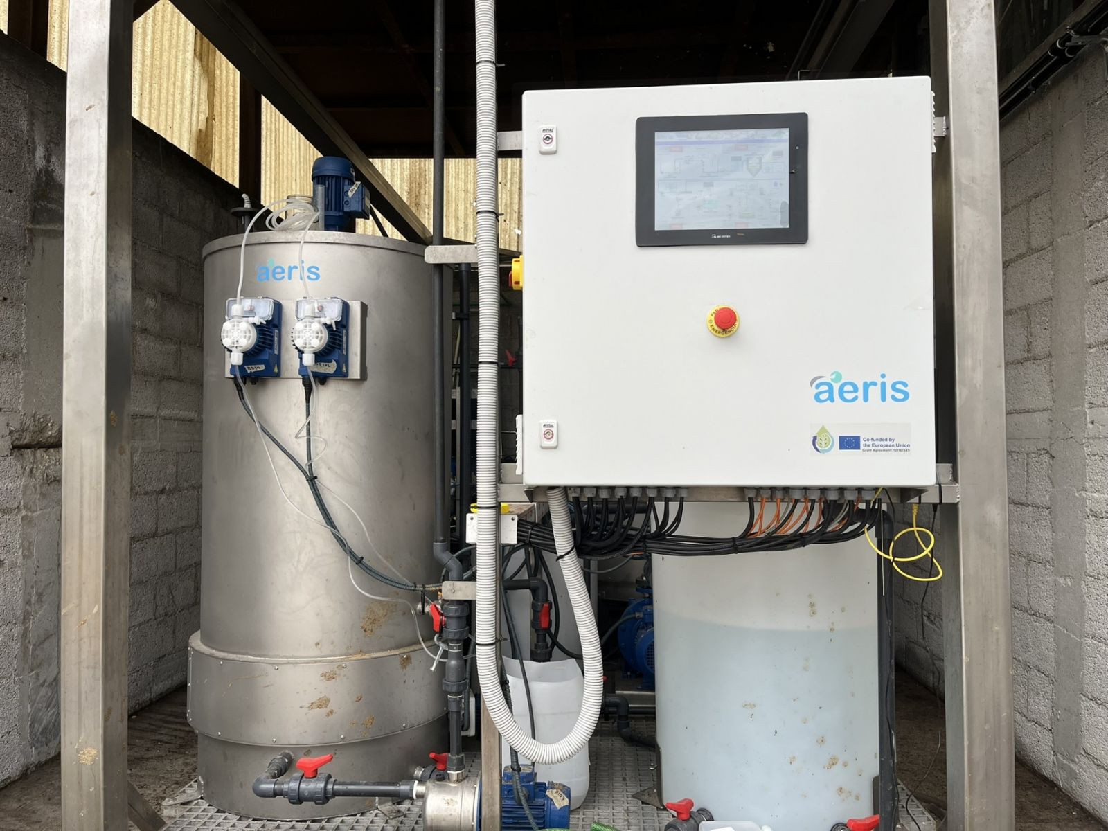 El agua recogida se almacena en tanques flexibles y se reutiliza para el riego de cultivos para el ganado y para cubrir otras necesidades no potables de la granja, reduciendo la dependencia de los recursos hídricos convencionales. Por otro lado, en marzo de 2026, los equipos de NTUA y AERIS lanzaron un sistema totalmente automatizado de tratamiento de aguas residuales para ganado, que combina tratamiento anaeróbico para la producción de biogás, eliminación de nitrógeno y desinfección por rayos UV.