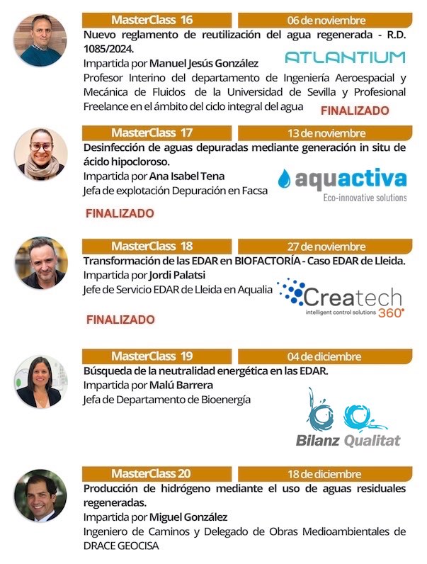 Mañana jueves 11 de diciembre a las 16:30 horas de España, continuamos con nuestro "III Ciclo de MasterClass sobre tratamiento de aguas residuales urbanas e industriales" organizado por AGUASRESIDUALES.INFO para los profesionales del tratamiento del agua de España, Portugal y todos los rincones de América Latina.