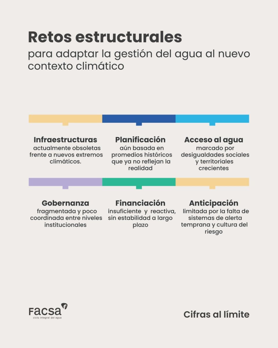 En este escenario, el informe Impacto de los extremos climáticos en los recursos hídricos, elaborado por Facsa junto a la consultora Red2Red, pone el foco en un aspecto clave para el sector: cómo los fenómenos extremos no solo tensionan la disponibilidad del recurso, sino también los mecanismos de reparto, acceso y financiación.