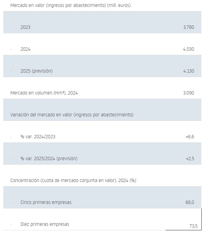• La facturación agregada de las empresas dedicadas al abastecimiento de agua alcanzó los 4.030 millones de euros en 2024, un 6,6% más, incremento apoyado en la subida de las tarifas