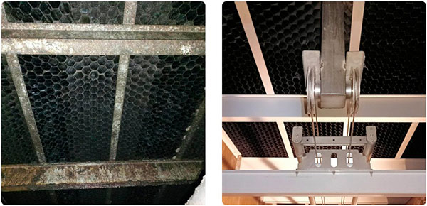 En las imágenes se muestra el estado de los módulos lamelares tras seis meses de funcionamiento con limpieza semanal.