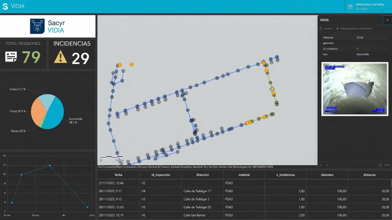 • El proyecto VIDIA es un modelo entrenado para detectar incidencias, clasificarlas y geoposicionarlas en la red de alcantarillado