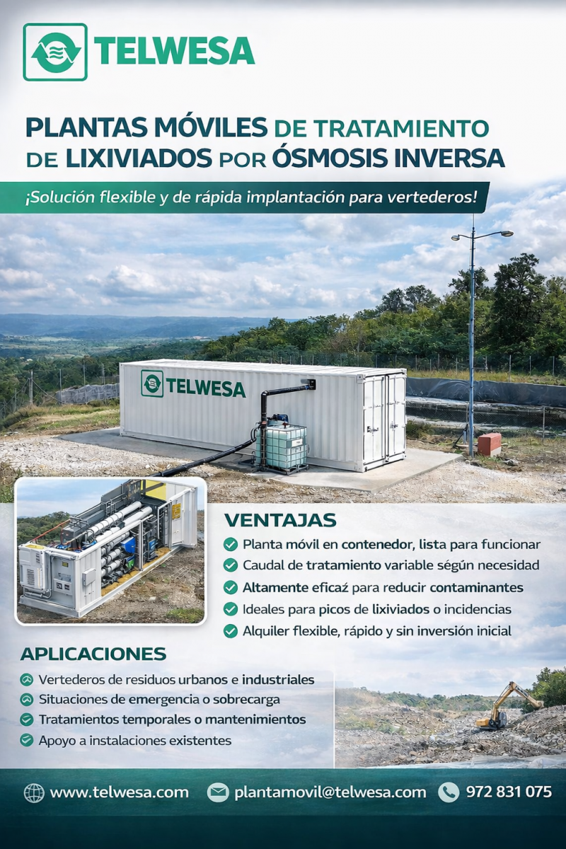 En TELWESA, disponemos de plantas móviles de tratamiento de lixiviados mediante ósmosis inversa, diseñadas para dar respuesta rápida y eficaz a necesidades eventuales de tratamiento en vertederos.