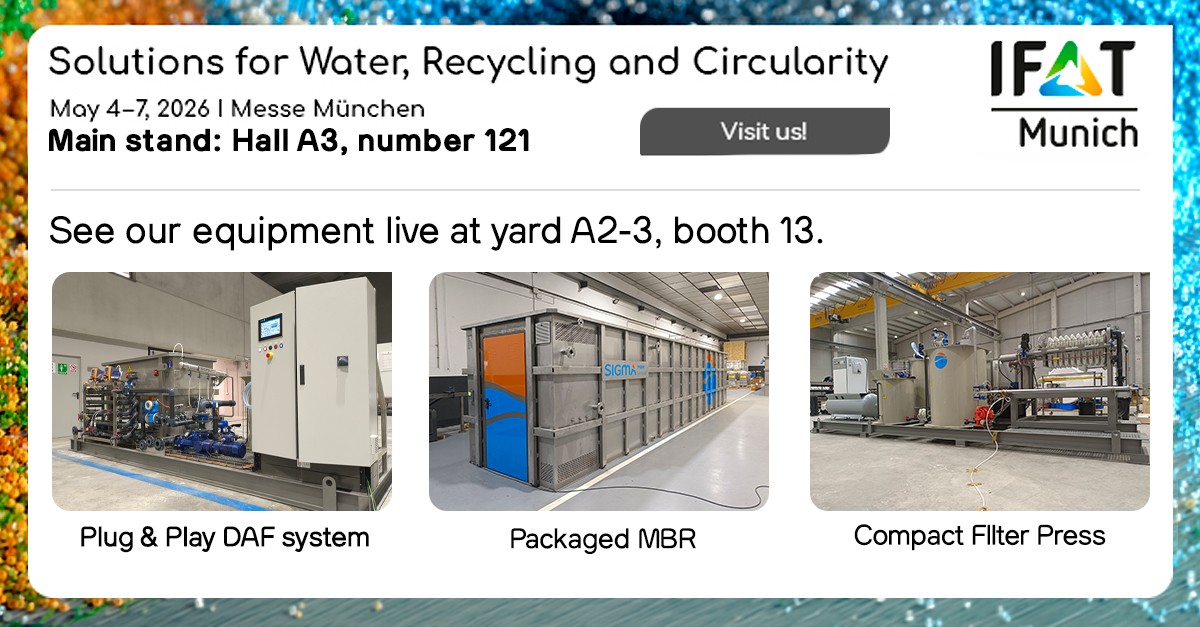 Con su participación en la IFAT Múnich 2026, SIGMA Water Group refuerza su posición como referente en el diseño y fabricación en soluciones compactas y eficientes para el tratamiento de aguas residuales industriales.