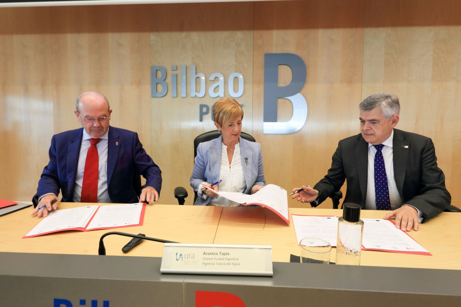 Así se han comprometido las tres entidades que han procedido a la firma de un convenio en el día de hoy en un encuentro celebrado en el puerto de Bilbao, por el que se establecen las condiciones para la financiación, licitación, ejecución y dirección de las obras, así como el mantenimiento y explotación a futuro del sistema de saneamiento. En el acto de firma, han participado Arantxa Tapia, Presidenta de URA y consejera de Desarrollo Económico, Sostenibilidad y Medio Ambiente del Gobierno Vasco; Ricardo Barkala, Presidente de la Autoridad Portuaria de Bilbao; y Kepa Odriozola, Presidente del Consorcio de Aguas Bilbao Bizkaia.