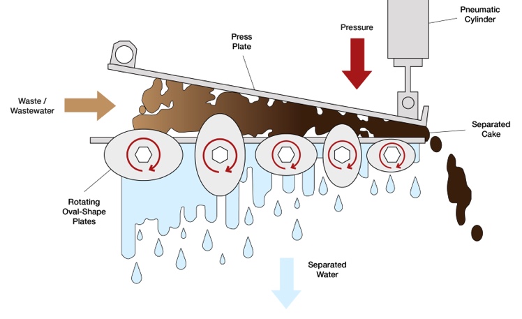 Su tecnología se basa en la rotación sincronizada de discos ovalados entre hendiduras de 1 mm en una rejilla de acero inoxidable. Esta dinámica evita la colmatación, elimina la necesidad de lavados frecuentes y garantiza un funcionamiento continuo, estable y con una alta capacidad de transporte de sólidos.